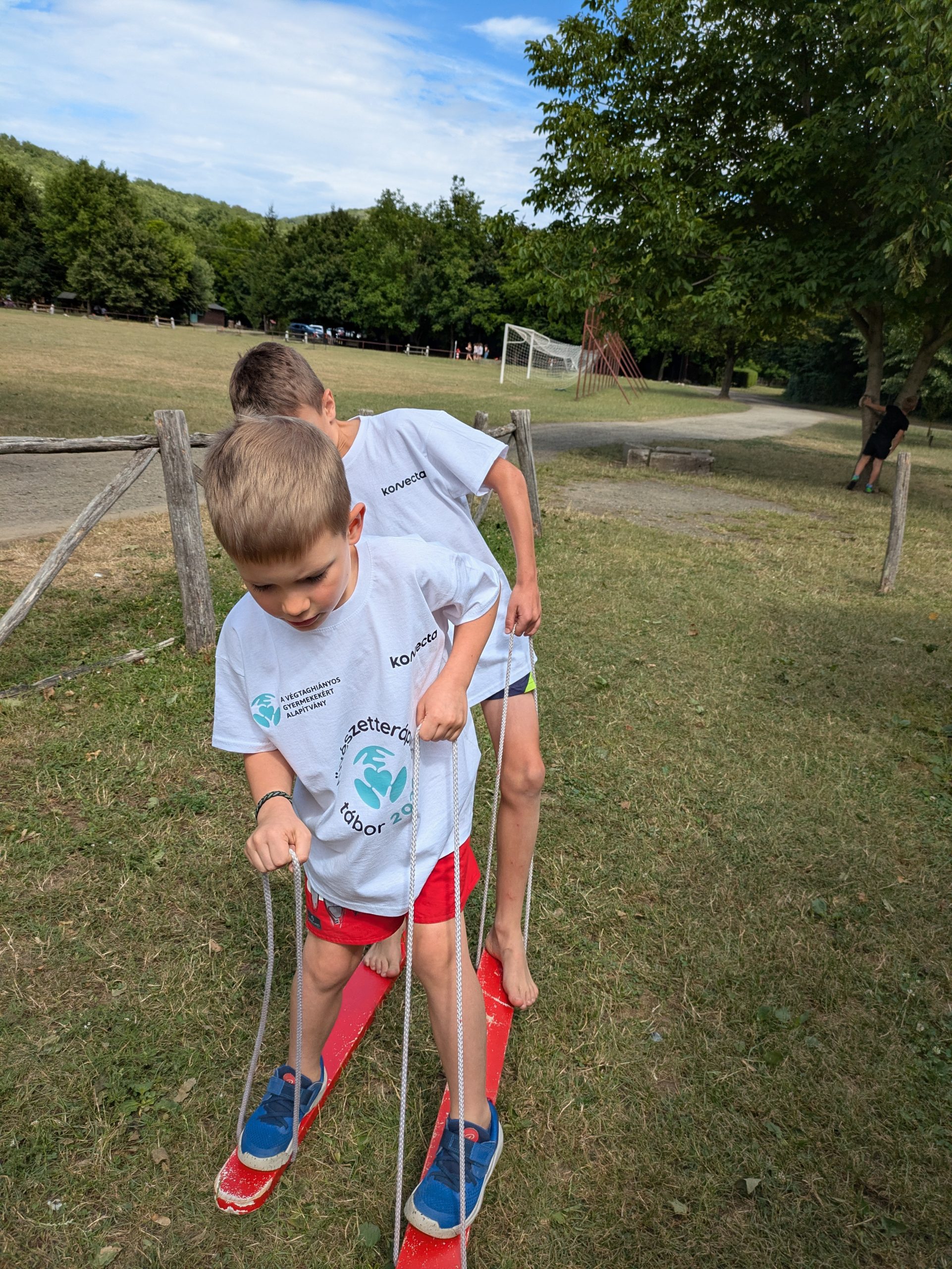Még ennél is nagyobb volt a lelkesedés, amikor a Konecta Hungary munkatársai toppantak be rengeteg süteménnyel és gyümölccsel, aminek az elfogyaztása után következett az egész délutános kalandpálya, ahol állomásonként más és más feladat várta a gyerekeket.